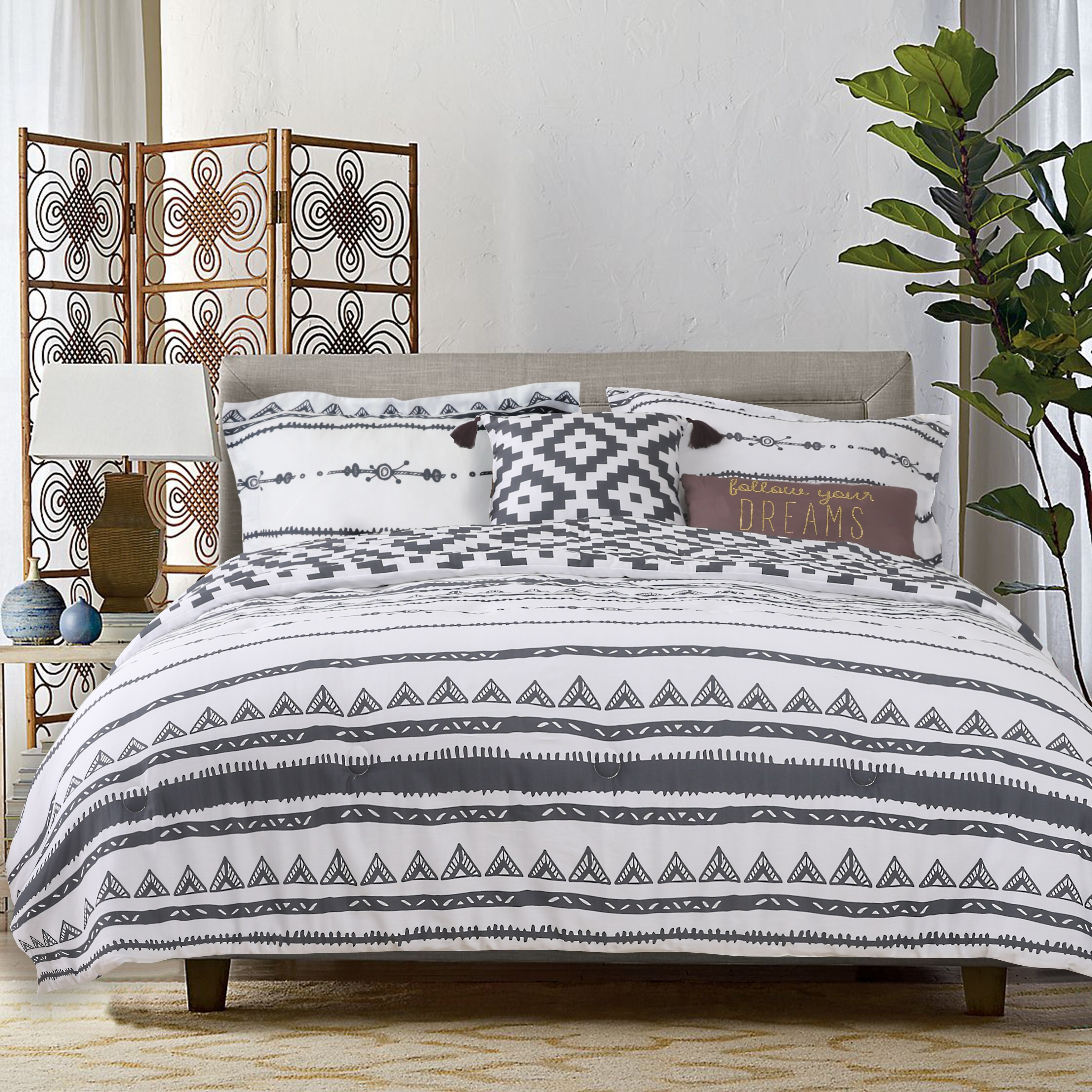 Shop The Curated Nomad Coronado 5 Piece Cotton Comforter Set Overstock 29774900 Full Queen Grey White