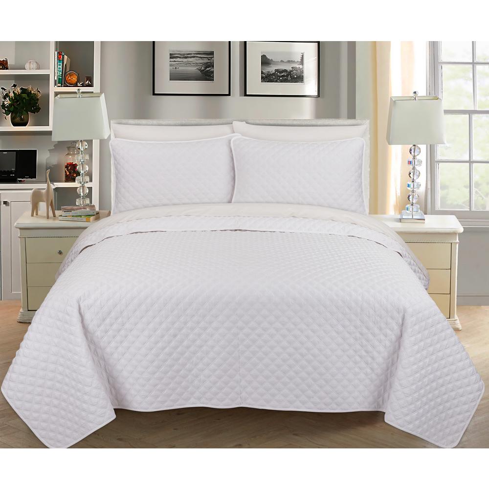 Nouvelle Home Palazzo 3 Piece Cotton White Queen Quilt Set Qsk003qwh The Home Depot