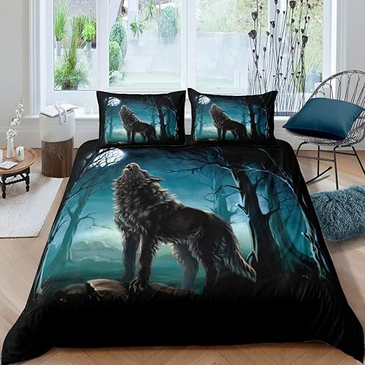 Amazon Com Feelyou 3d Wolf Print Bedding Set King Size 3 Pieces Wildlife Animal Comforter Cover Microfiber Wolf Pattern Duvet Cover Decorative Moon Night Forest Bedspread Cover Personality Quilt Cover Home Kitchen