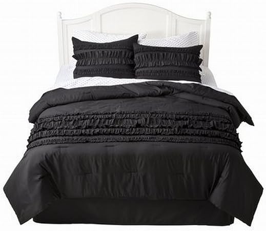 Xhilaration Twin Bed In Bag Black Ruffle Comforter Sheets Sham 6 Pc Complete Set Amazon Co Uk Kitchen Home
