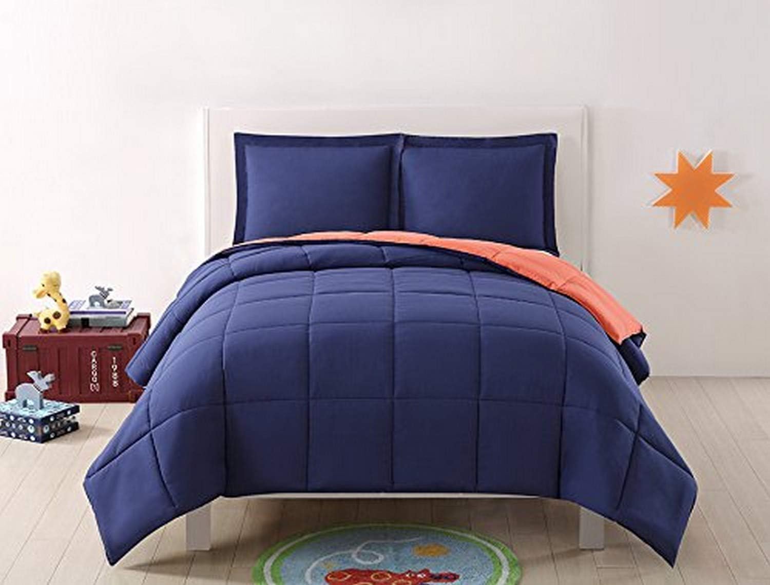 Amazon Com Laura Hart Kids Solid Navy And Orange Reversible 3 Piece Twin Xl Comforter Set Home Kitchen