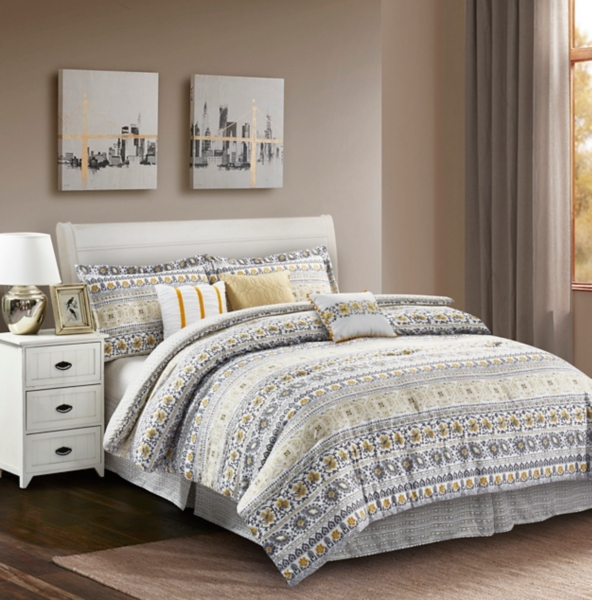 Vendor 3 Bedding Sets Q763003q Queen Mato Gray Yellow White Comforter Set Becker Furniture Bedding Sets