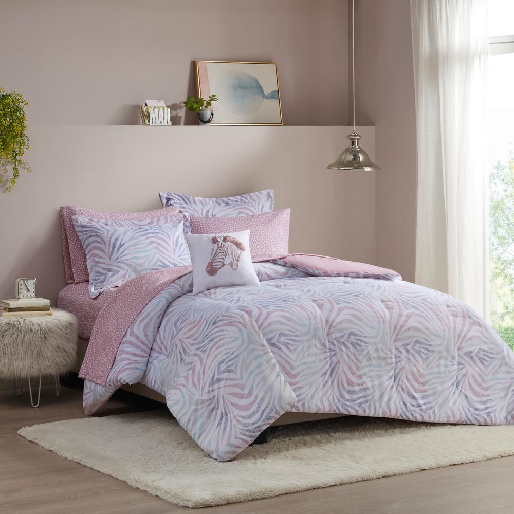 Intelligent Design Maya 8 Piece Lavender Full Zebra Printed Comforter Set Id10 1894 The Home Depot