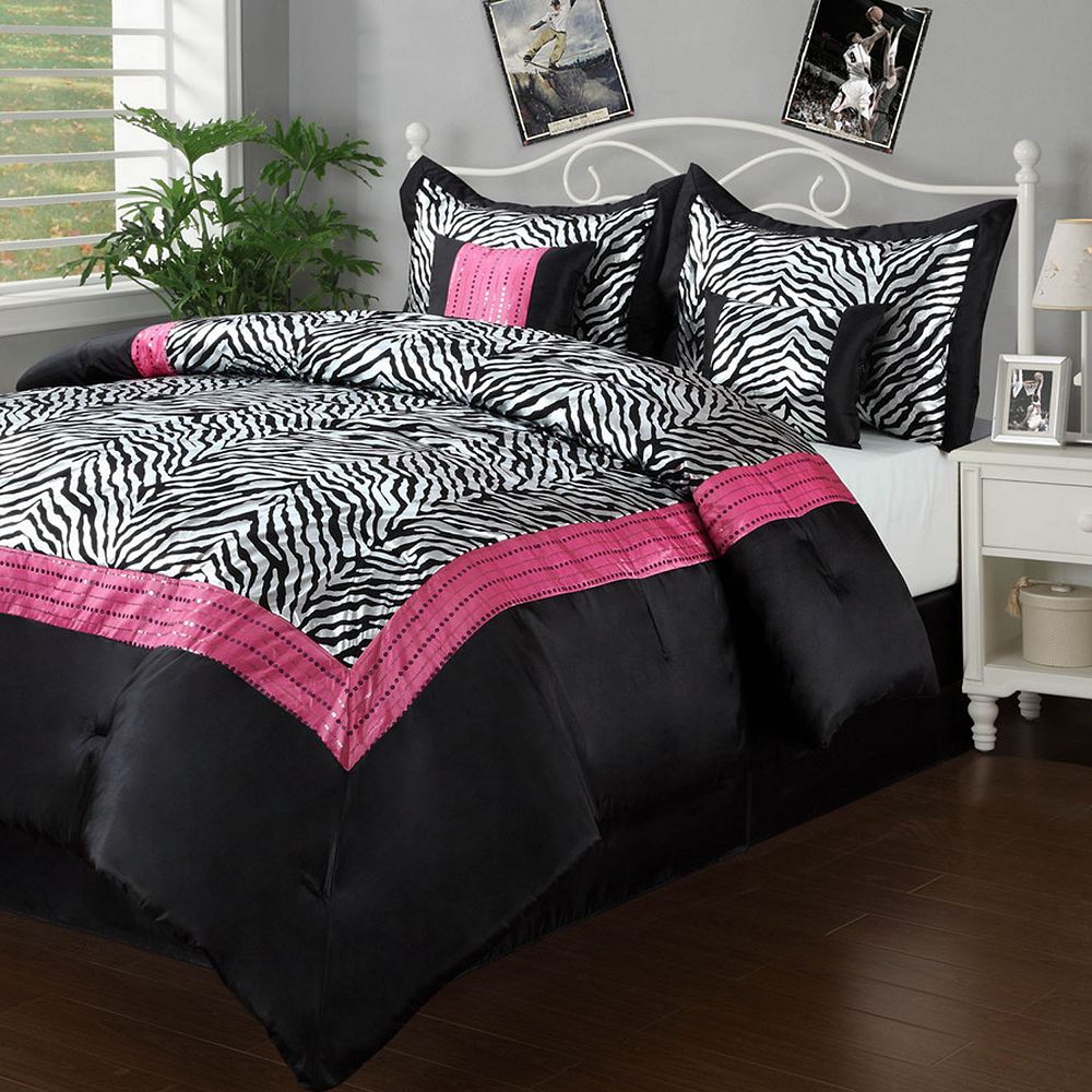 5 Pieces Twin Hot Pink Black And White Leopard Zebra Comforter Set Bed In A Bag Bedding Grand Linen Http Zebra Bedding Black Comforter Sets Black Comforter