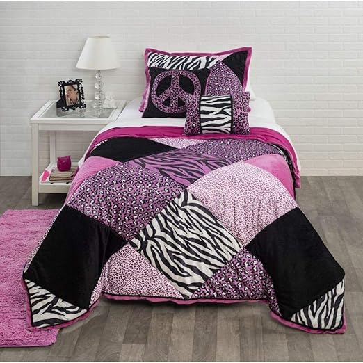 Amazon Com Os 3 Piece Full Queen Black Pink Purple Animal Patchwork Pattern Comforter Set High Class Cheetah Zebra Print Bedding Polyester Casual Contemporary Style Best Bedding For Girls Multicolor